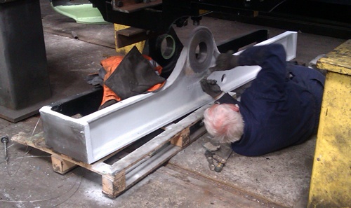 Work continues at Llangollen towards fitting the Motion Girders to the Frame Assembly.