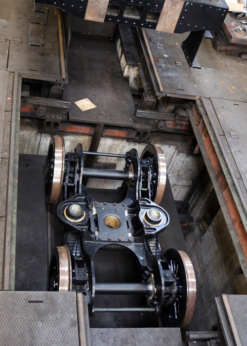 The bogie in the wheeldrop at Tyseley, prior to being raised under the locomotive. Photo – Bob Sweet